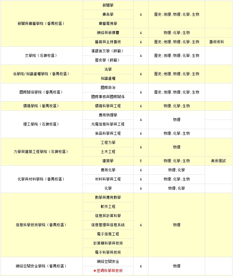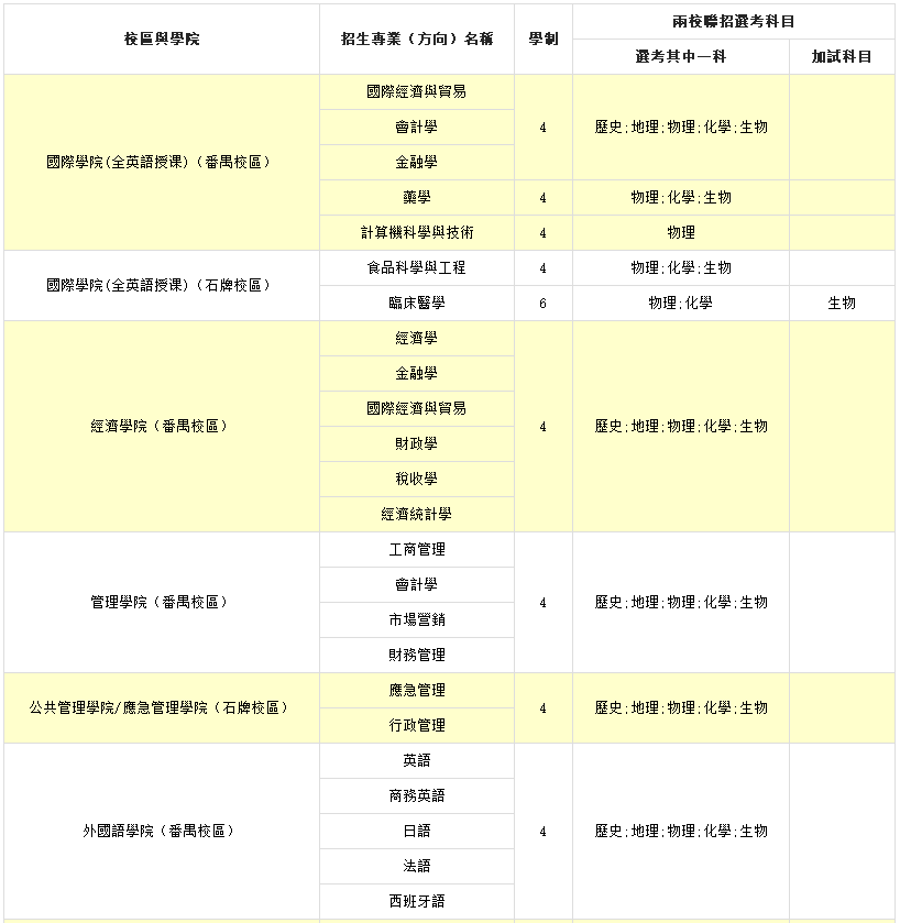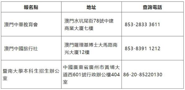 註:上述日期及事項或有更新,將在暨南大學本科生招生辦公室官網公佈。
